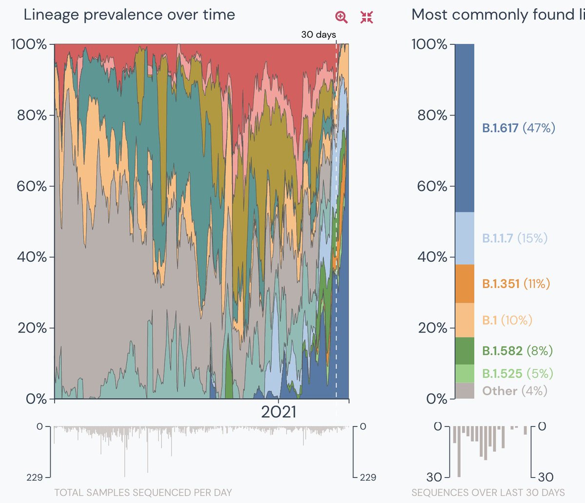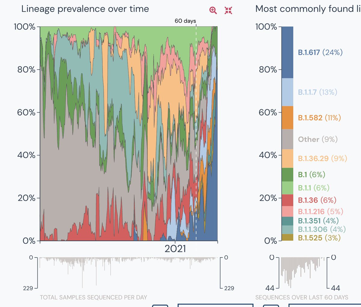 7. When all the variants are combined, the sampling in the entire country was only 155 in the last 30 days- a consistent low from feb 20. See the surge in the double variant. Also a small portion 4% is unknown but its a lot given the sample size.