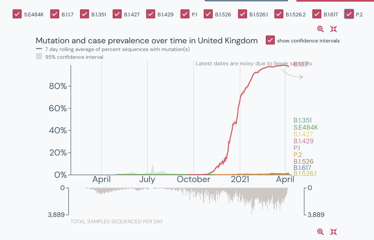 2. The B.1.617 variant has two mutations, E484Q & L452R. Both separately found in many other variants, but together, it was found for the first time in India on 5 Oct 2020
