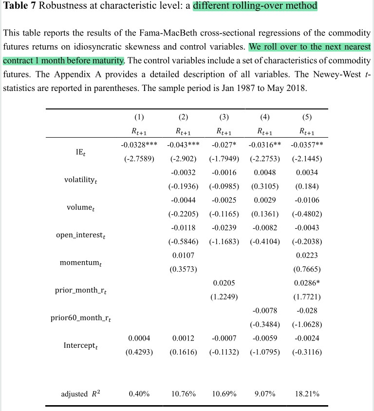 10/ "Results imply that idiosyncratic skewness is the main component of skewness effect in the commodity futures markets (consistent with the findings in Section 3)."