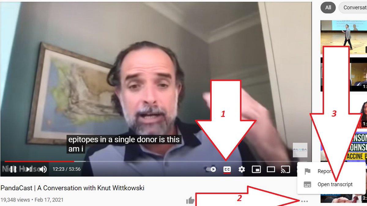1. click on CC. 2. Then click on the little 3 dots. 3. Click on open transcript.