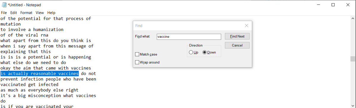 Here I've selected "is actually reasonable vaccine"