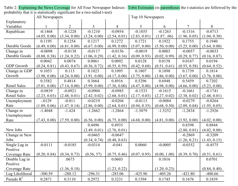 "Newspapers give more positive coverage to the same economic news when a Democrats is President than a Republican. When all news is pooled, results are highly significant."