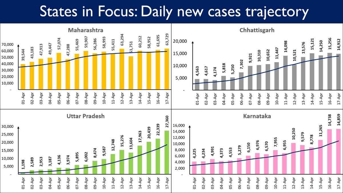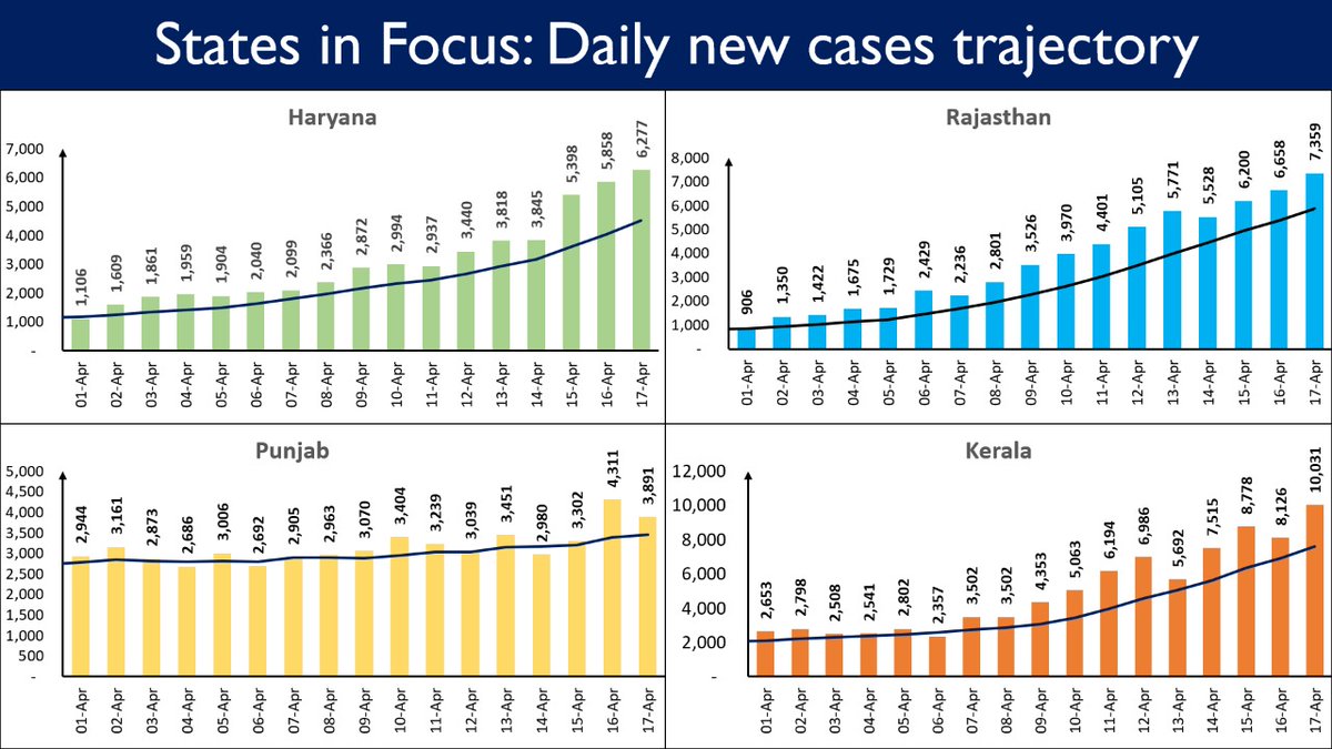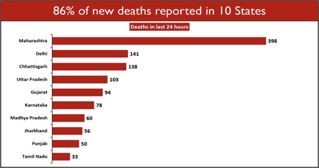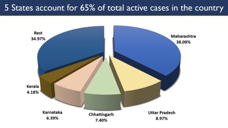 Maharashtra, Kerala, Punjab, Karnataka, Gujarat, and Tamil Nadu continue to report a spike in Daily New Cases.