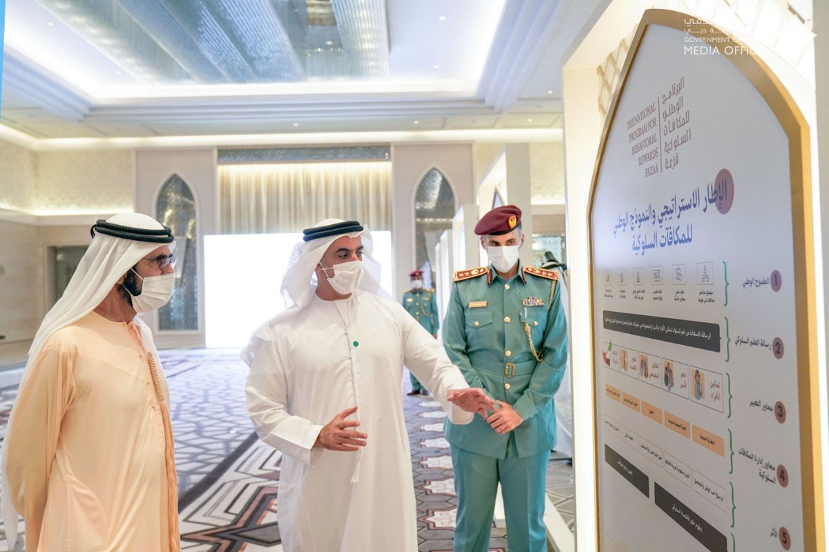 صاحب السمو الشيخ محمد بن راشد آل مكتوم يطلق في قصر الوطن بأبوظبي، البرنامج الوطني للمكافآت السلوكية، إحدى مبادرات إدارة المكافآت السلوكية في وزارة اللا مستحيل لدعم وتطبيق الإطار الاستراتيجي والنموذج الوطني (الإماراتي) للمكافآت السلوكية. #الإمارات