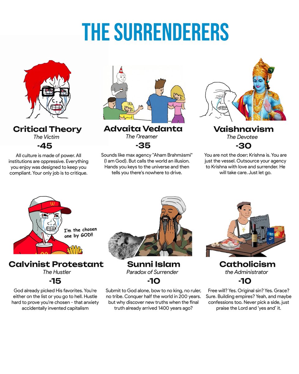 A high agency worldview will want you to act, desire, and conquer while a low agency one will want you to surrender, renounce, and relinquish.