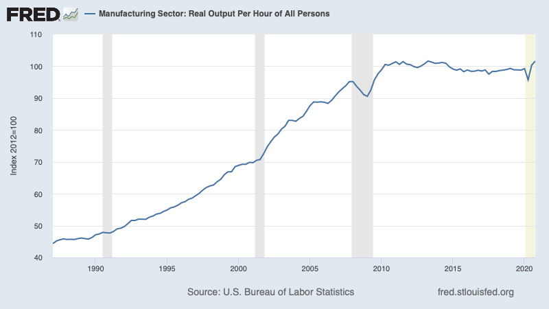 Far from seeing a huge, job-destroying surge in productivity, we're seeing very slow productivity gains 2/ bls.gov/opub/mlr/2021/…
