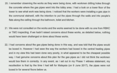 Primarily, his evidence focused on GTLA's complaints about work from 2016 onwards to install new gas pipes through the tower's staircase. This work was carried out by the National Grid and was separate to the refurbishment of the tower by Rydon et al