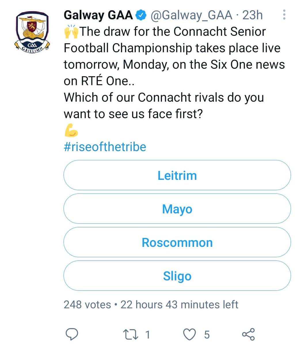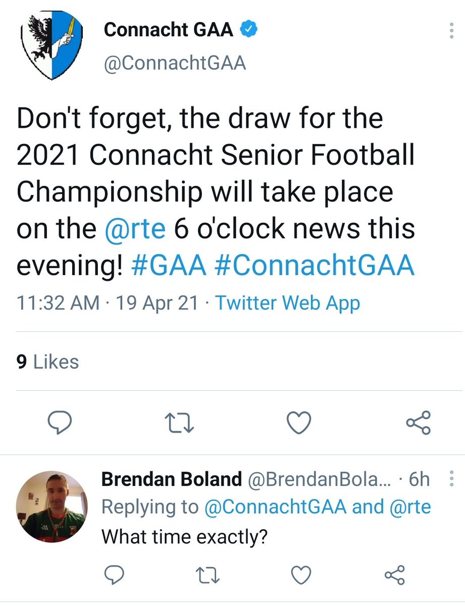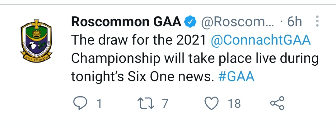 No one shared the draw live as it took place - not RTÉ on their social, not the Gaa, not Connacht Gaa not the counties involved.