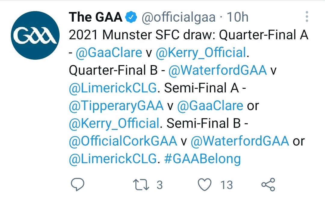 No surprise as this is the official Gaa Twitter feed of the MUNSTER championships. No images. No video. No crests even...