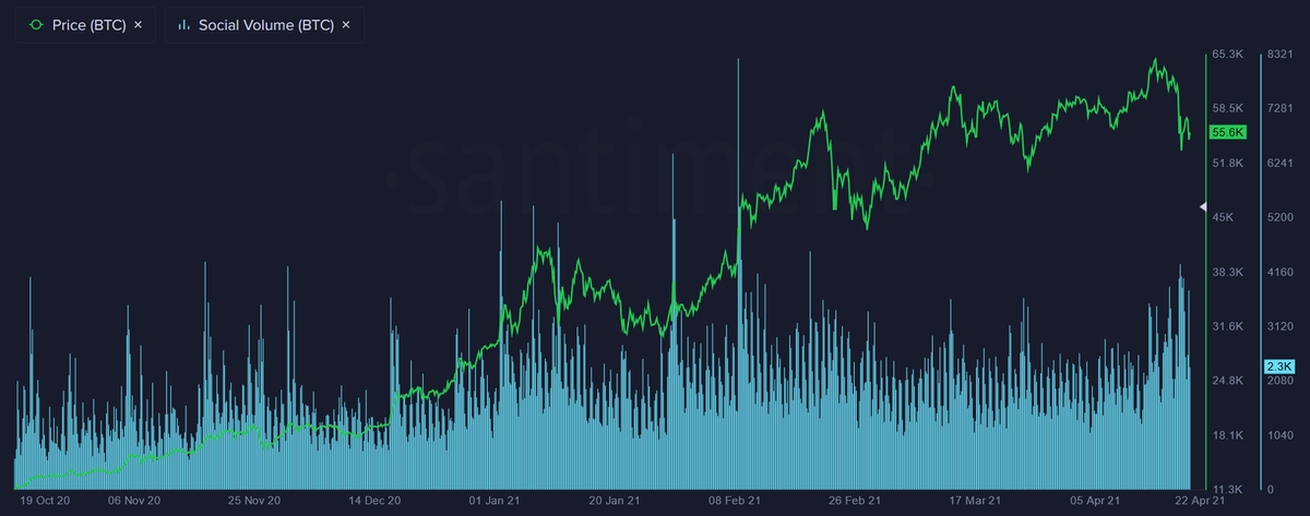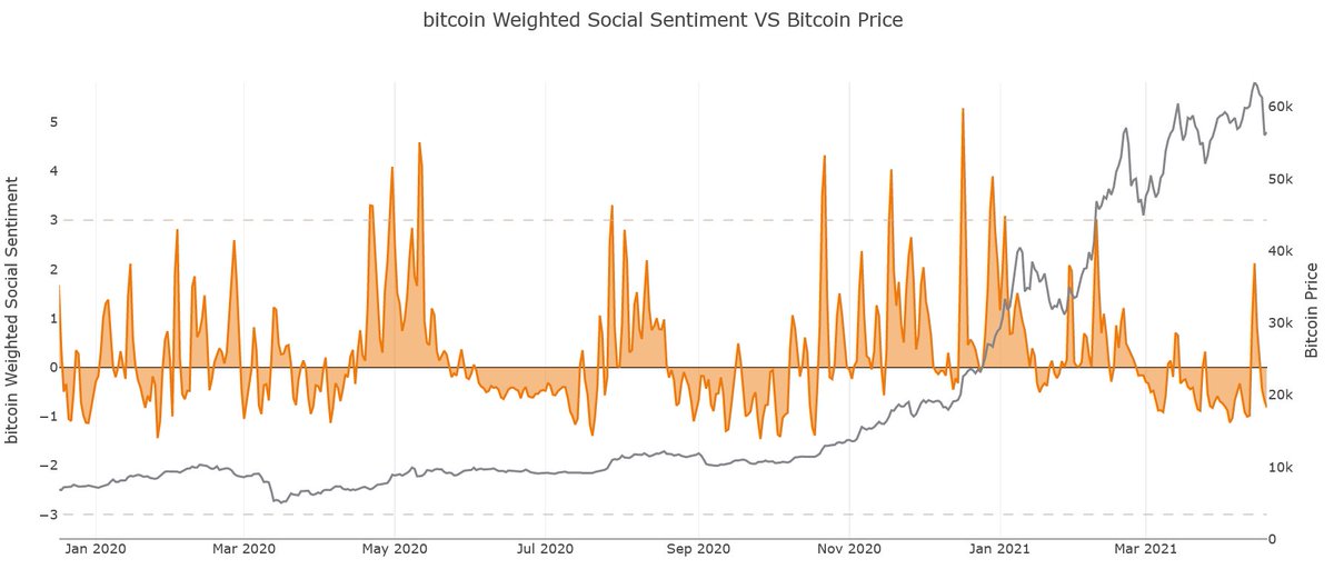 The (over)reaction to the dump can be observed by looking at the social mentions, which surged by +107% compared to the day prior, reaching its highest margin since the February price top😱 This points to growing fears and short-term panic on crypto social media 👀 #Bitcoin
