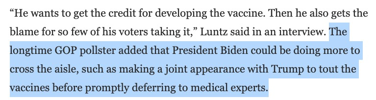 @DrEricDing@ddiamond@FrankLuntz Ah, I see they had to try and #BothSides this as well: "Republicans may be endangering hundreds of thousands of people's lives by refusing to get vaccinated against a global pandemic which has already killed 3 million people...but do Democrats have to be so *pushy* about it??"
