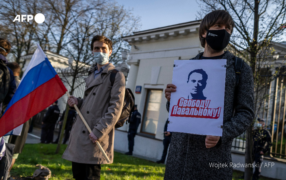 Supporters of Kremlin critic Alexei Navalny rally in cities around Europe including in Berlin, Germany, in Prague, Czech Republic and in front of the Russian embassy in Warsaw, Poland