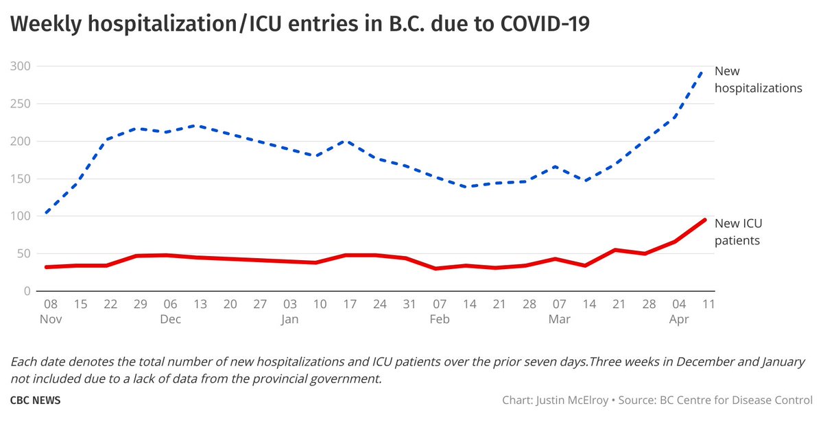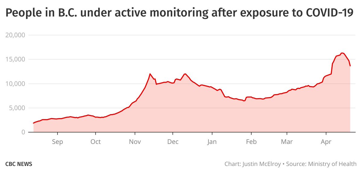 849 cases of #COVID19 announced in B.C. today, as the province's 3rd wave keeps showing signs of a plateau, though less in the way of a real fall.