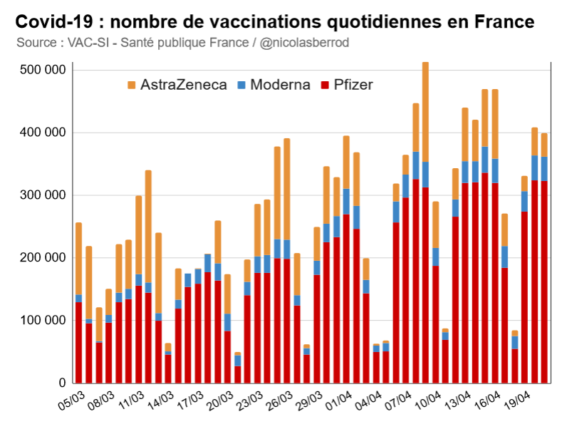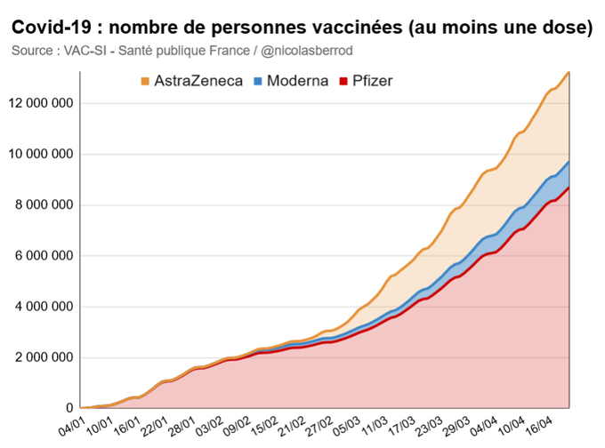 Le million de personnes vaccinées (au moins une dose) avec #Moderna en France a été atteint, au 21 avril.