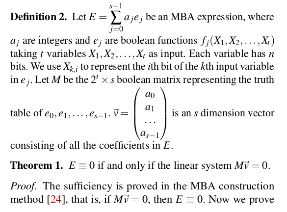 However, this affirmation is not correct, or at least not entirely precise imho, even restricting our analysis to linear MBA expressions: the underlying theorem provides the mechanism to work around "some" linear MBA expressions, but not necessarily all of them.