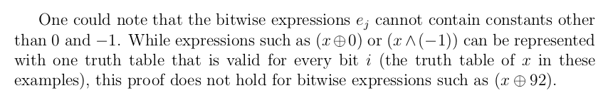Let's get to the core contribution of the paper: a way to reduce n-bit expressions to 1-bit expressions. This is an application that comes from proving the converse part of a known theorem (see section 2.2.3 from my thesis for a more detailed version and proof of sufficiency).