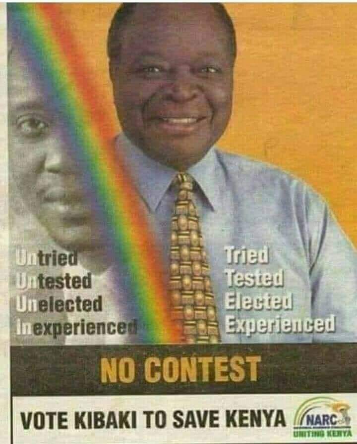 In this political poster of Kibaki in 2002, it was unimaginable that Uhuru would aspire to be our President.