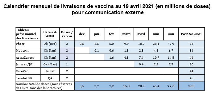 7,1 millions de doses #AstraZeneca doivent arriver en mai et juin + 500 000 cette semaine + le million reçu et pas utilisé. Donc 8,6M d'ici fin juin.