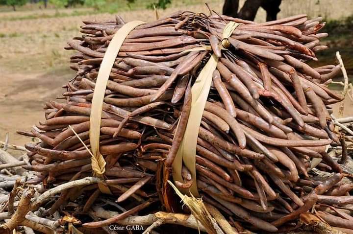 Au Sénégal 🇸🇳 les fruits du néré sont cueillis puis séchés sur un mirador. Ensuite les braves dames pilent le fruit pour séparer les graines et la pulpe. La Pulpe est conservée sous forme de poudre et les graines sont transformées en condiment le NÉTÉTOU⤵️