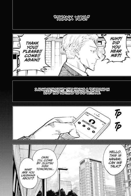 Nanami went back to the lifestyle of a businessman after leaving the world of jujutsu to find that innocence again but he was never able to grasp it he was just in another endless spiral doing nothing and being useless.
