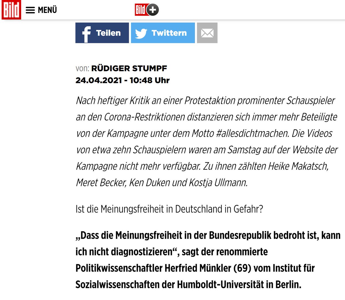 „Dass die Meinungsfreiheit in der Bundesrepublik bedroht ist, kann ich nicht diagnostizieren“ hat dann Prof. Münkler diagnostiziert.
