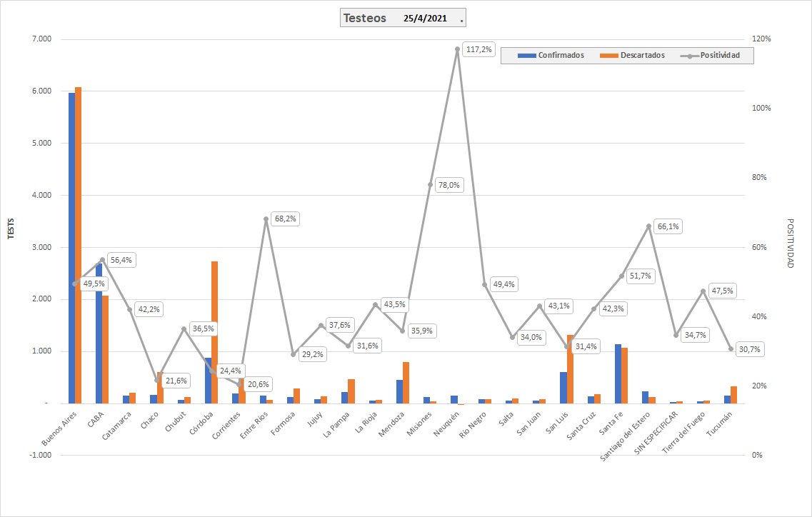 Ya se hicieron 8.502.957 Tests de diagnóstico (error +/- 10 tests), 30,5% de positividad.