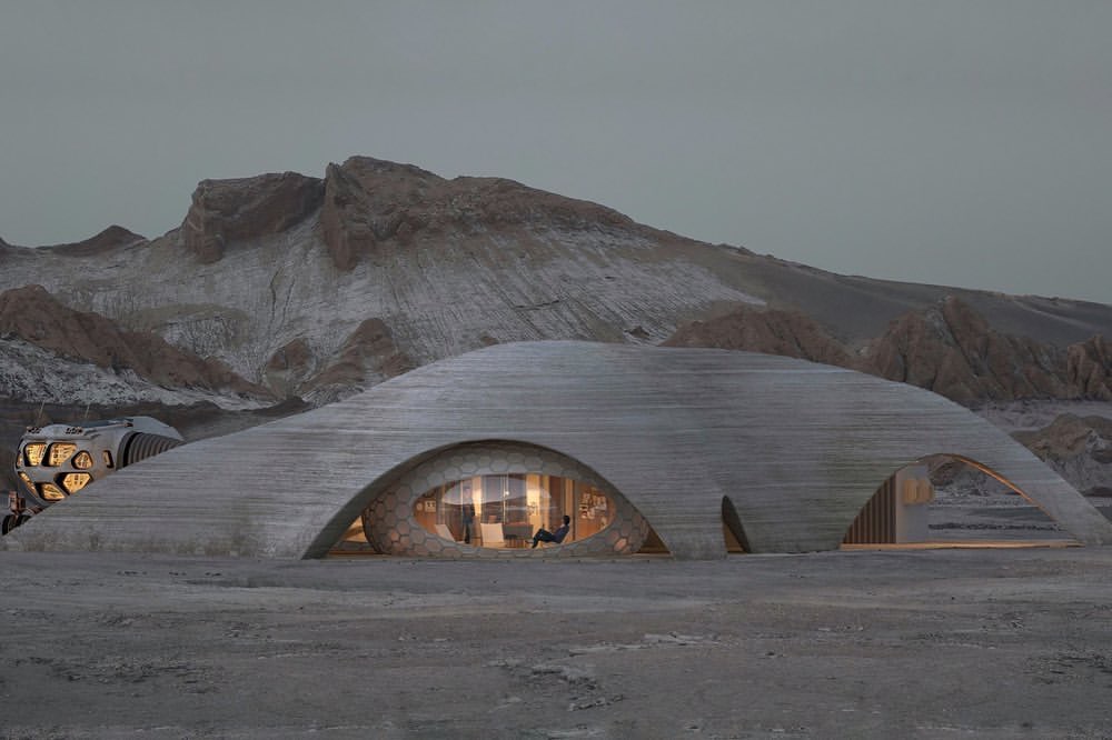 É uma casa longe de casa, onde os astronautas podem realizar o trabalho mais importante da história da exploração espacial. ” - @hassell_studio. Conceito apresentado durante o Nasa 3DPrintingHabitat Challenge 2018.). (Parte 6:Marte estaria pronto para recbermos, nossa nova casa)