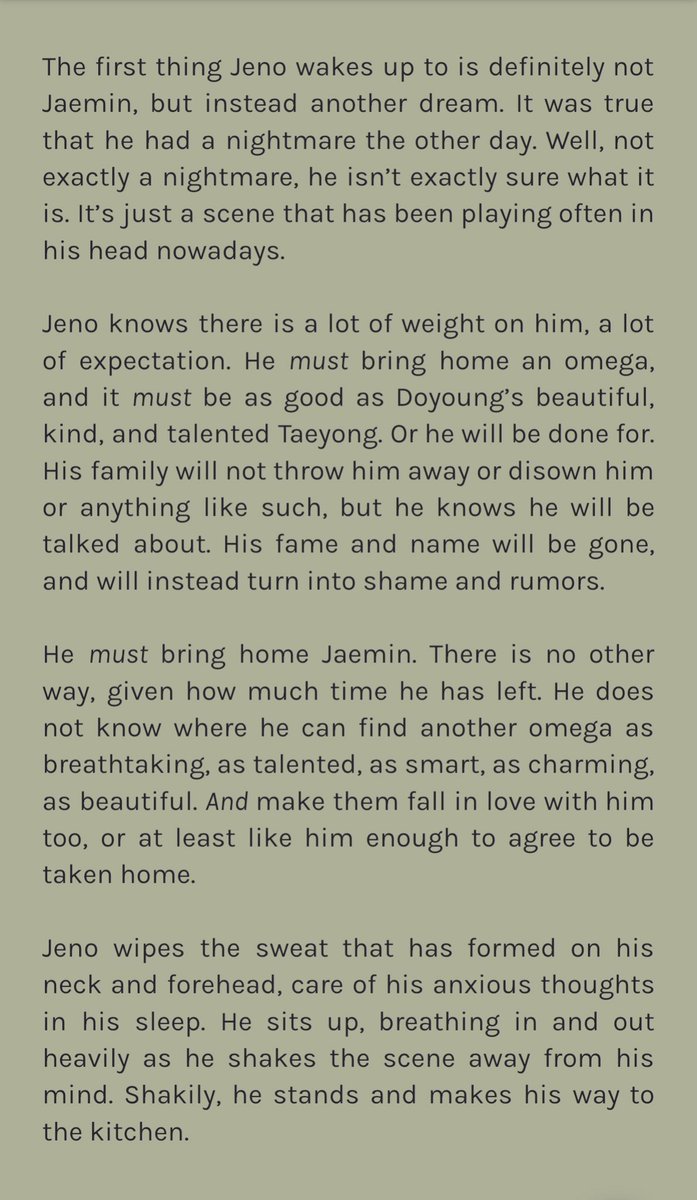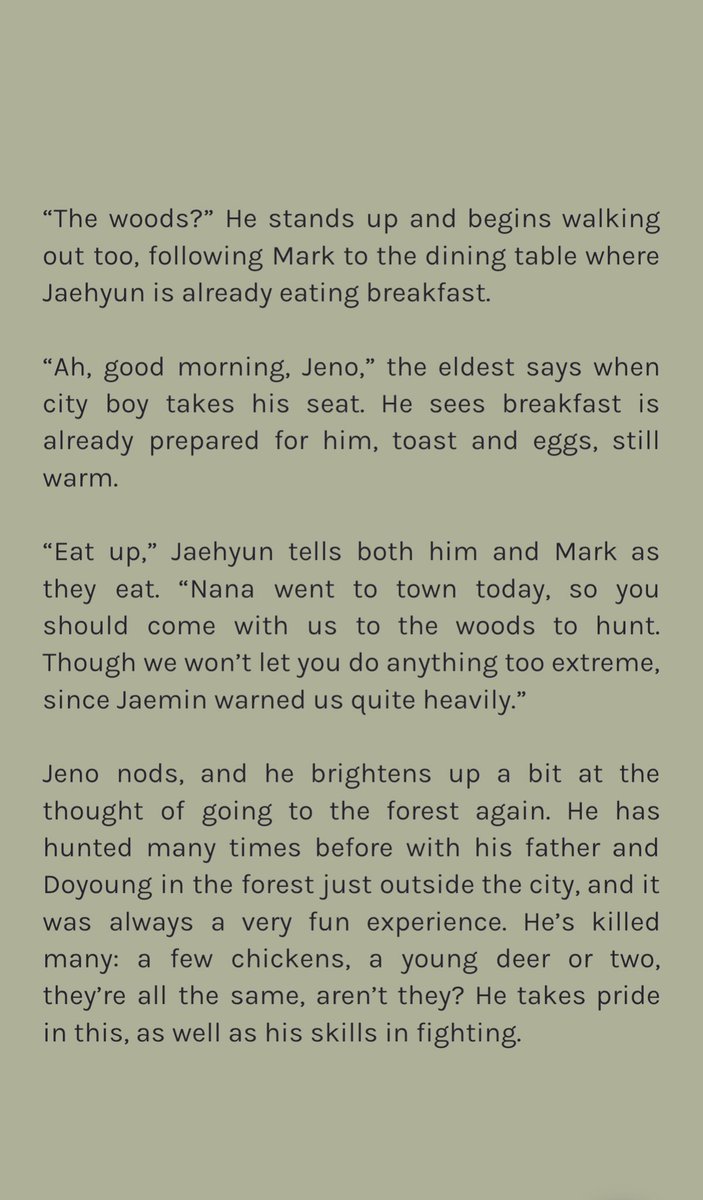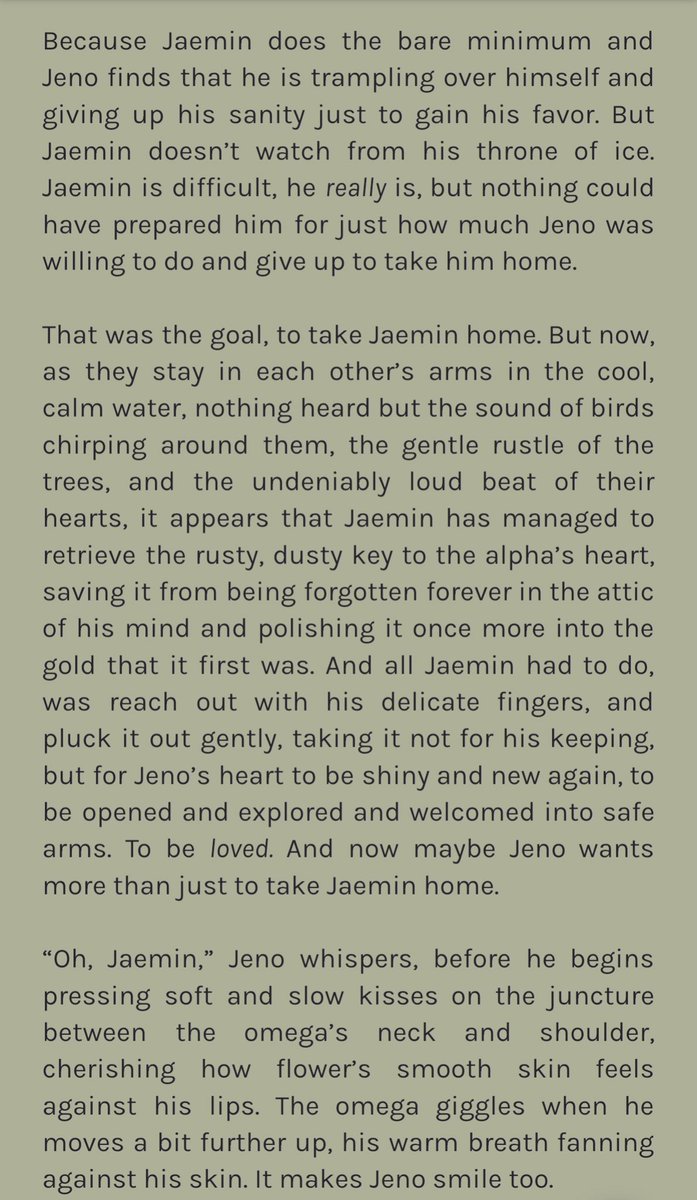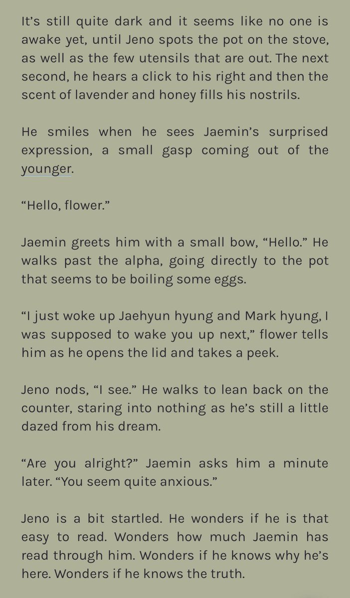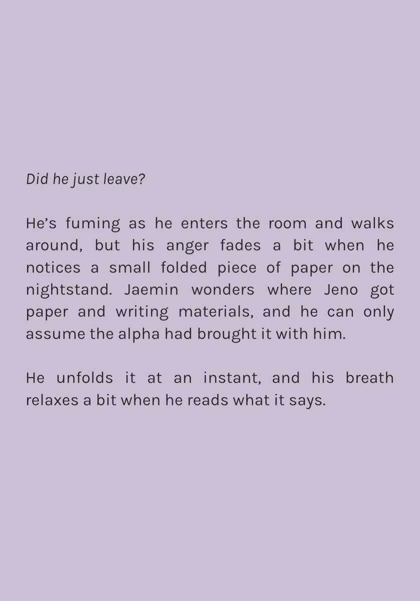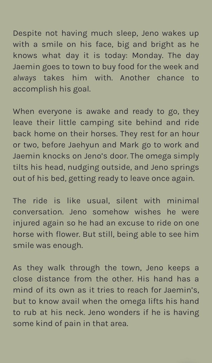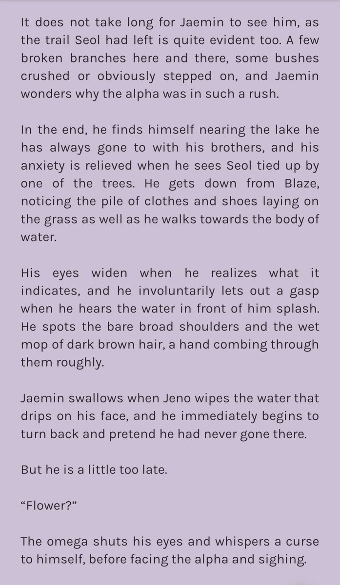 confident alpha jeno leaves the city solo to prove his worth to his family. but after a small accident, he finds himself in the home of three brothers and under the care of the youngest, omega jaemin, who doesnt seem to like city boys at all
