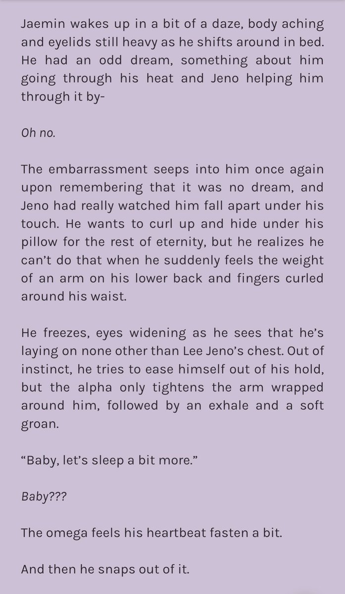 jeno gets called up by his best friend, donghyuck, asking if he can babysit his son while hes getting his husband mark an anniversary gift. and jeno‘s totally fine with it, until he comes to the lee residence and finds he has to babysit a child— with his ex