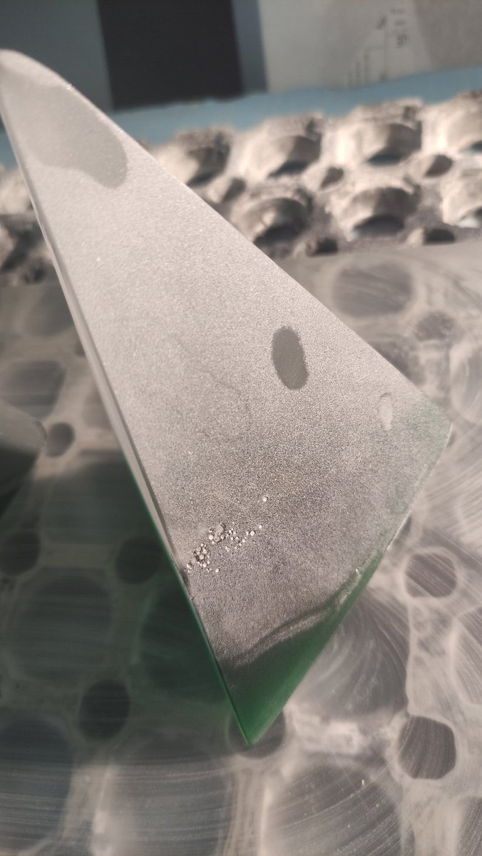 Aussi je change d'abrasif pour passer au corindon blanc , plus tendre que le carbure il permet un dépoli très fin