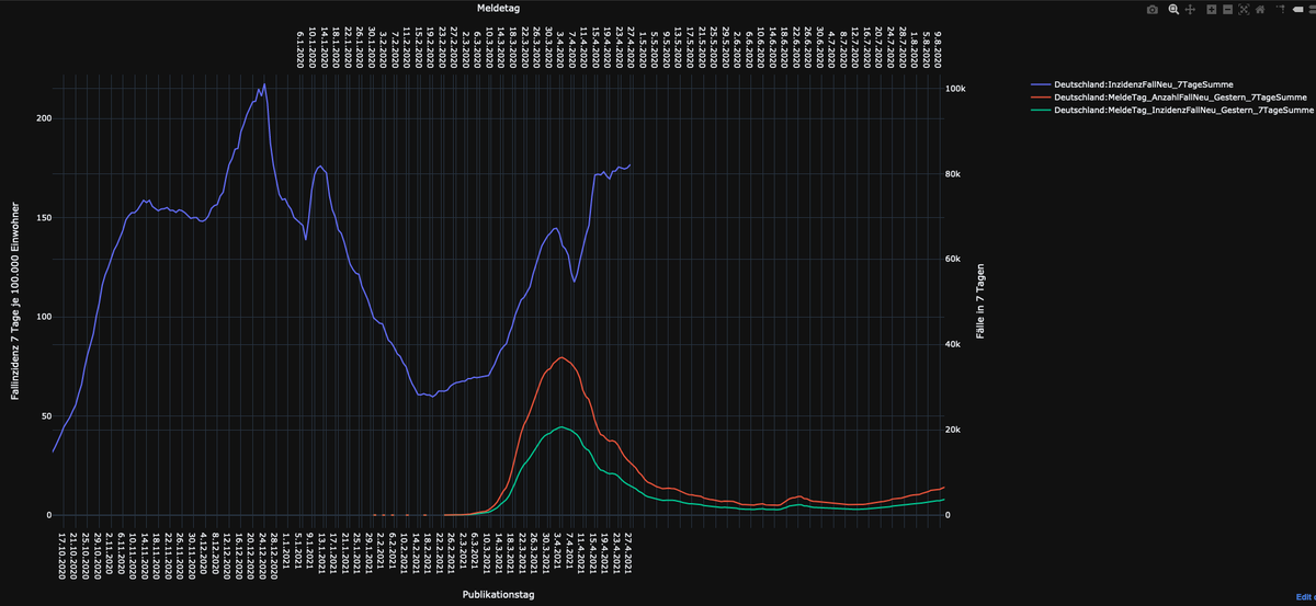 Ich hoffe, dass sich die Bundesnotbremse bald stärker bemerkbar macht, bisher reicht es nur aus, um uns lange auf dem derzeitigen Niveau zu halten bzw. den Anstieg zu bremsen, aber nicht umzukehren. Die Prognose, dass wir noch nicht auf dem Gipfel der 3. Welle sind, trifft ...