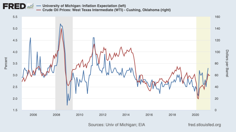 Thinking some more about this: what do consumer expectations about inflation really tell us? The answer is, they're mainly about the *current* price of oil 1/