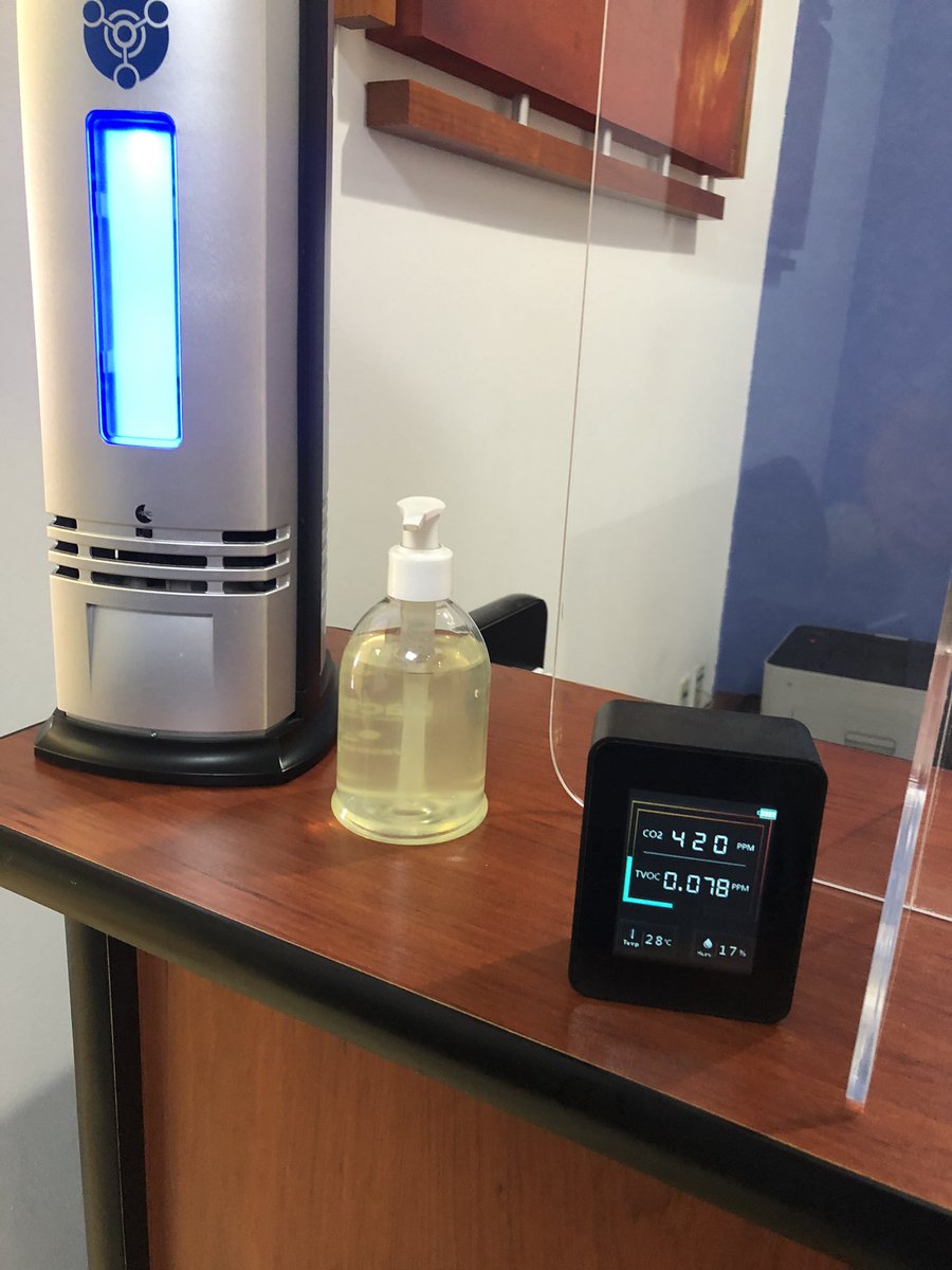 Con mi asistente, coloqué una mampara. Pero obstruyó el flujo de aire y se elevó el CO2. Lo resolví colocando otro filtro más pequeño.