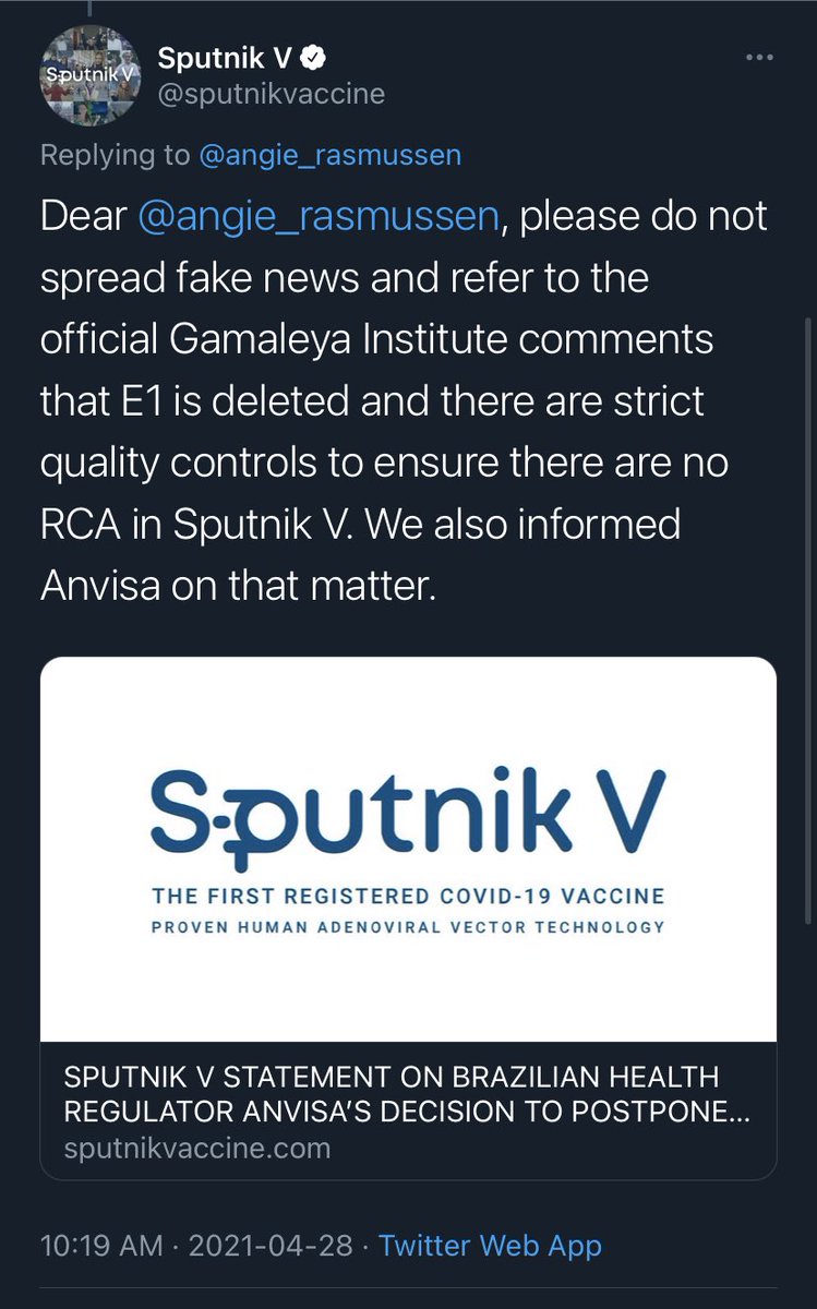 See, as Dr Rasmussen describes, there’s a part of the virus that you can delete so the virus can’t replicate. And they didn’t do that for the 2nd Sputnik shot!