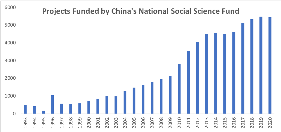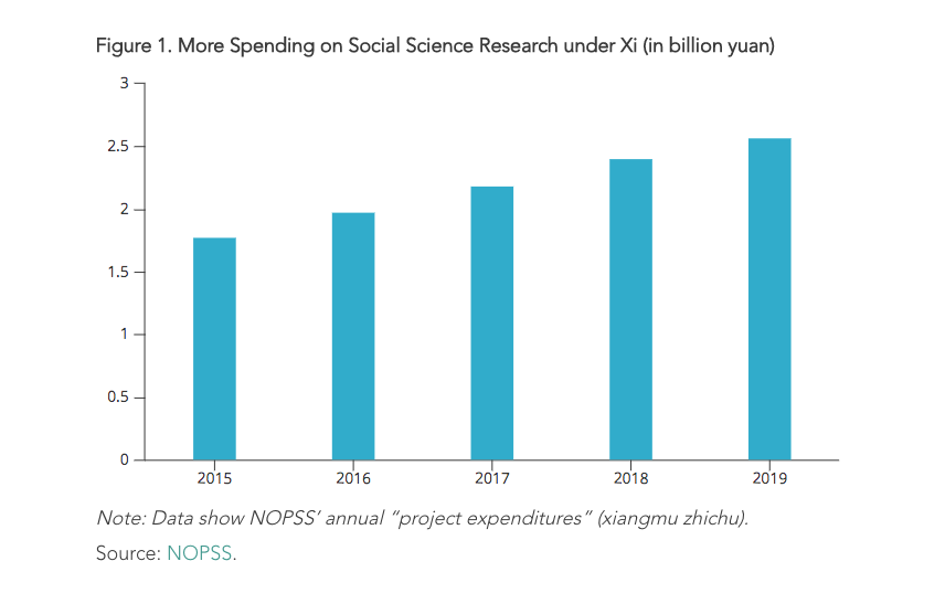 Xi's drive to build "social sciences with Chinese characteristics" has coincided with a 44.3% 5-year increase in social science funding.