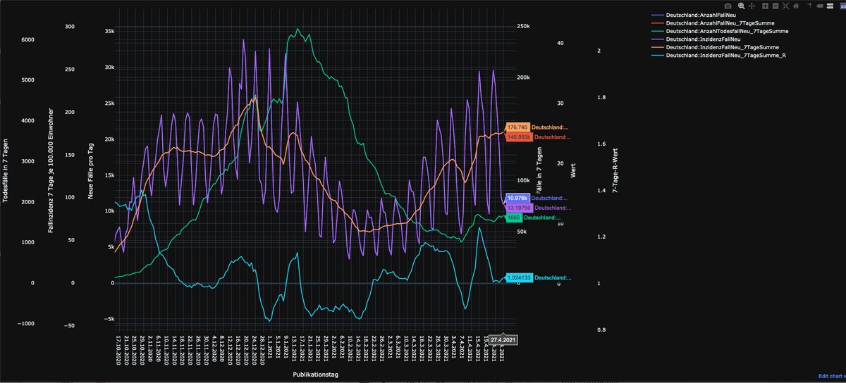 Zahlen von Heute. Es geht weiter seitwärts, aber der leichte Anstieg verstärkt oder verstetigt sich, 7-Tage-Inzidenz nach Publikationsdatum bei 177. Zahl der Toten steigt leicht auf 1665 in den letzten 7 Tagen.