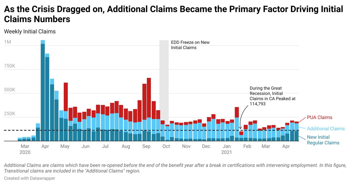 We partnered with @CA_EDD to analyze CA's administrative data on UI claimants, focusing on the nature of the crisis & how it was affecting workers in near real-time.