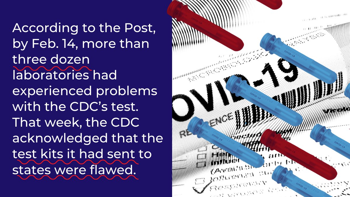 But according to the Post, by Feb. 14, more than three dozen laboratories had experienced problems with the CDC’s test. That week, the CDC acknowledged that the test kits it had sent to states were flawed.
