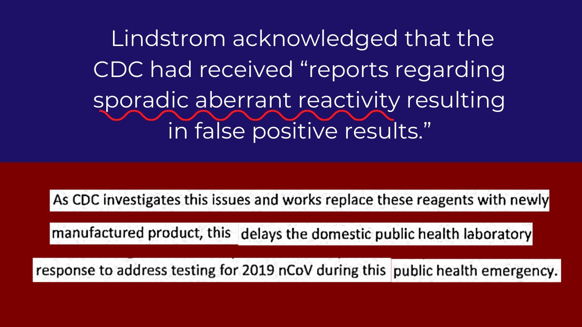 The next day, a CDC senior adviser for laboratory science said that she had “heard from a few that they are having trouble with the test” and expressed concern about whether the CDC was addressing these complaints. documentcloud.org/documents/2068…