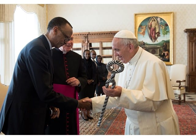 Pope Francis (r) with the Rwandan President Paul Kagame at the Vatican. Vatican Radiio