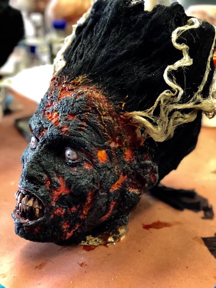 And as for the poor bride...we’ll in our 2018 maze, she was in pieces when the lab exploded so obviously she couldn’t walk out of there. So the Bride is like an overcooked hot dog...but still alive. Here’s a pic of the scene and a close up of her finished mask.