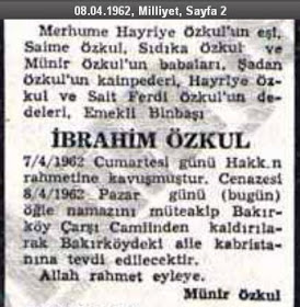 Münir Özkul'un annesi Hayriye hanım, Tophane-i Amire Bahriye Dairesi azasından Mirliva Mustafa Mazhar Paşa'nın kızıdır.