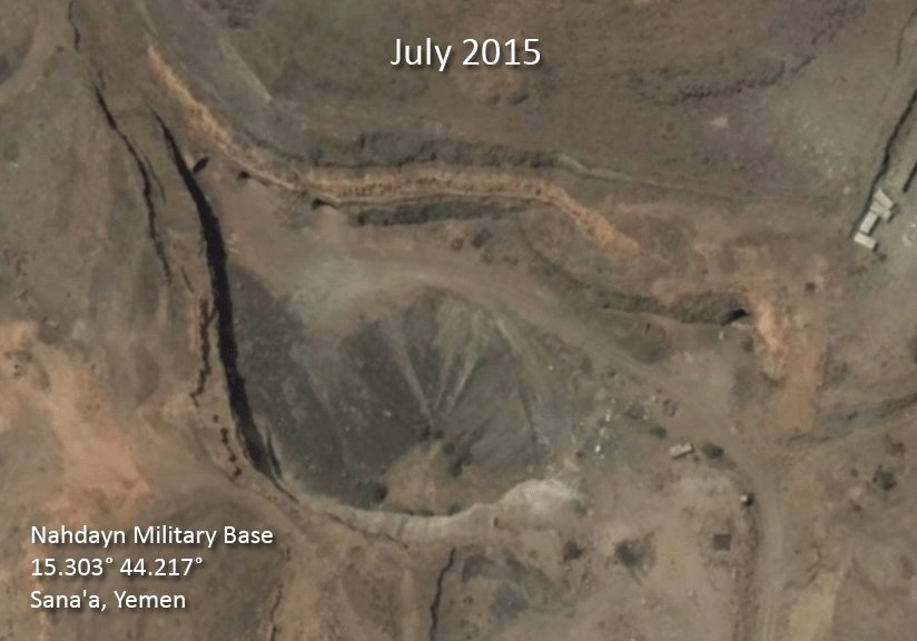 What appears to be another reactivated tunnel entrance can be observed at Sanaa's Nahdayn military base. (15.303035° 44.217263°)