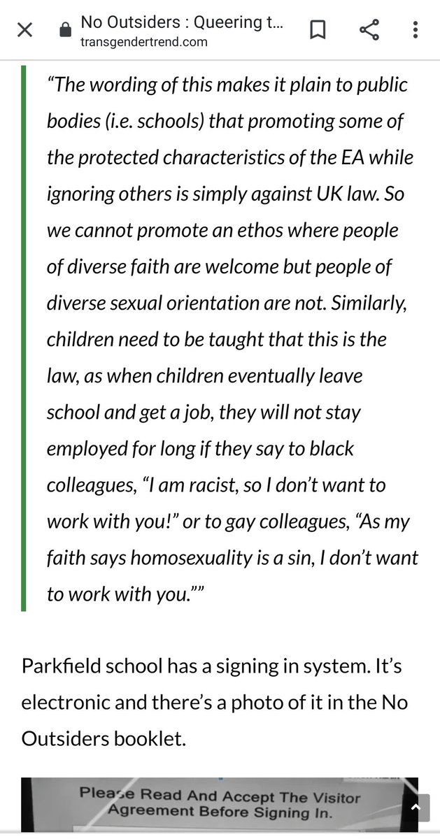 morphs into No Outsiders, a diversity ethos & teaching the Equality Act by misrepresenting EA2010