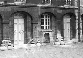 Voici une photo ancienne de la cour avec ses portes en ferronnerie, et l'aspect actuel.
