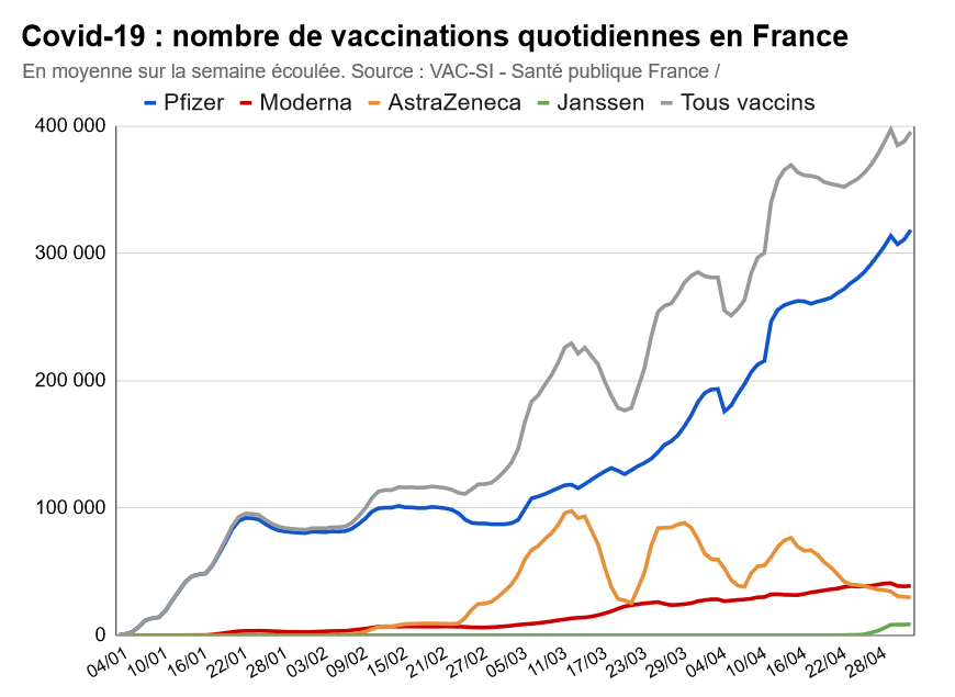 L'équation est simple : si le gouvernement veut atteindre ses objectifs, il faudrait être à 320 000 premières doses administrées par jour en moyenne, et pas 263 000 comme actuellement. Le rythme n'est évidemment pas linéaire mais une chose est sûre : il faudra accélérer.
