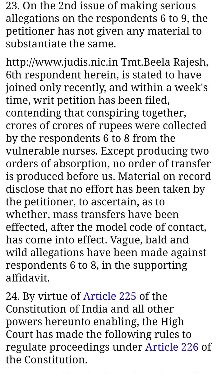 இதில் @DrBeelaIAS அவர்கள் தான் அப்போது தான் பதவி பெற்றதாகவும், இதில் போதிய அலசல் இல்லை, அவகாசமளித்தால் கவனம் கொள்வதாக குறிப்பிடப்பட்டு, 4 பேர் மீது ஆதாரமற்ற அவதூறு பரப்பியிருப்பதாக கூறுகிறது நீதிமன்றம் 9/n