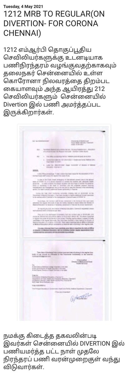 சார்ந்தோர் தலைநகர் சென்னையில் திறம்பட கொரானாவை கையாள நிரந்தர பணியாளர்கள் ஆகினர் 👏🏻👏🏻👏🏻👏🏻