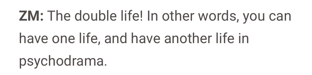 Psychodrama— group psychotherapy as “improvisational theater”— he gets plugged into the cybernetics guys & they create “rollenspiele” or “role-playing games”