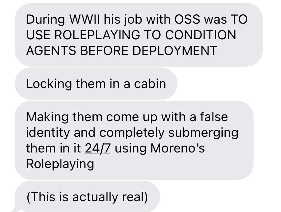 Sensitivity training, LARPing, Dungeons & Dragons, & Improv Comedy have the same origin— the codevelopment of psychological warfare & cybernetics at the OSS during WWII.